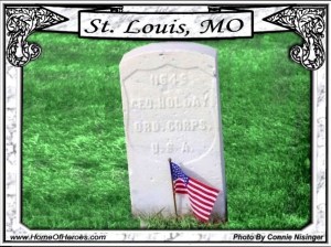In October 1891 at Fort Riley, Kansas, Private George Hobday finished his fourth enlistment. He traveled to St. Louis where, at the age of fifty-two he enlisted for a fifth time being assigned as an Ordnance Private at the Saint Louis Powder Depot at Jefferson Barracks, Missouri. Shortly after joining the unit he contracted double pneumonia and died on December 22, 1891. He was buried in the Jefferson Barracks National Cemetery with a headstone upon which his name was misspelled HOLDAY and with no mention of his being a Medal of Honor recipient.[8]