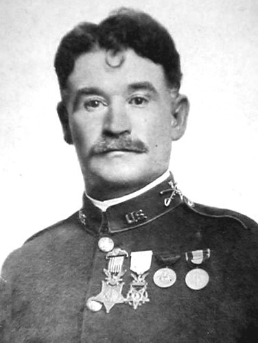 Based on the 1907 Official Army register, there were forty-nine living enlisted Medal of Honor recipients. From this list I eliminated the thirteen soldiers awarded the medal after 1896, leaving thirty-six soldiers. Assuming that the pictured individual was on active duty when the photograph was taken (1907 or later) I further eliminated the thirty-one soldiers that were retired by 1907, leaving the following five soldiers:
