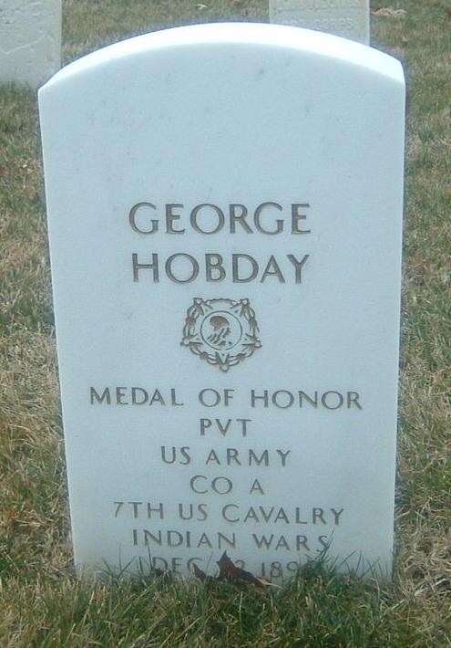 Private George Hobday is buried in the Jefferson Barracks National Cemetery, Saint Louis, Missouri. Hobday’s headstone was replaced after a newspaper article in 2004 pointed out the discrepancy in his original headstone.