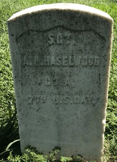 [3] National Archives and Records Administration, Burial Registers of Military Posts and National Cemeteries, compiled ca. 1862-ca. 1960, Archive Number: 44778151, Series: A1 627, Record Group Title: Records of the Office of the Quartermaster General, 1774-1985, Record Group Number: 92; Associated Press,”Wounded Knee Heroes,” Abilene Weekly Reflector, X (48) (1893, July 27), p. 5; Adjutant General’s Office, Final Statements, 1862-1899, “Haselwood, Alvin H.,” at Fold3, http://www.fold3.com/image/271303557/ accessed 15 Oct 2013.