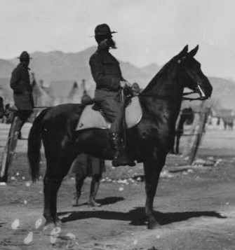 First Lieutenant S. R. H. Tompkins sporting his famous mutton chop whiskers at Fort Sill, Oklahoma, circa 1898.
