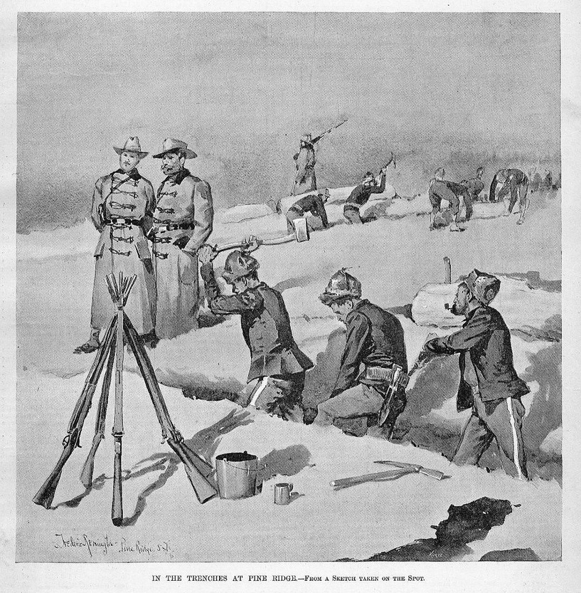 Frederic Remington’s “In the Trenches at Pine Ridge” appeared on the cover of Harper’s Weekly Magazine at the end of January 1891.