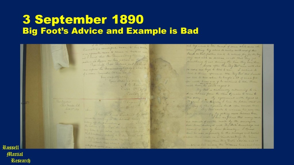 Capt. Hennisee’s 3 September 1890 report included examples of Big Foot’s apparent malign actions, although none rise to the level of depredations.