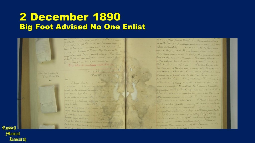 “Big Foot advi[sed that] no one enlist as scouts that they continue [dan]cing and if interfered with in their religious meetings to fight.”
