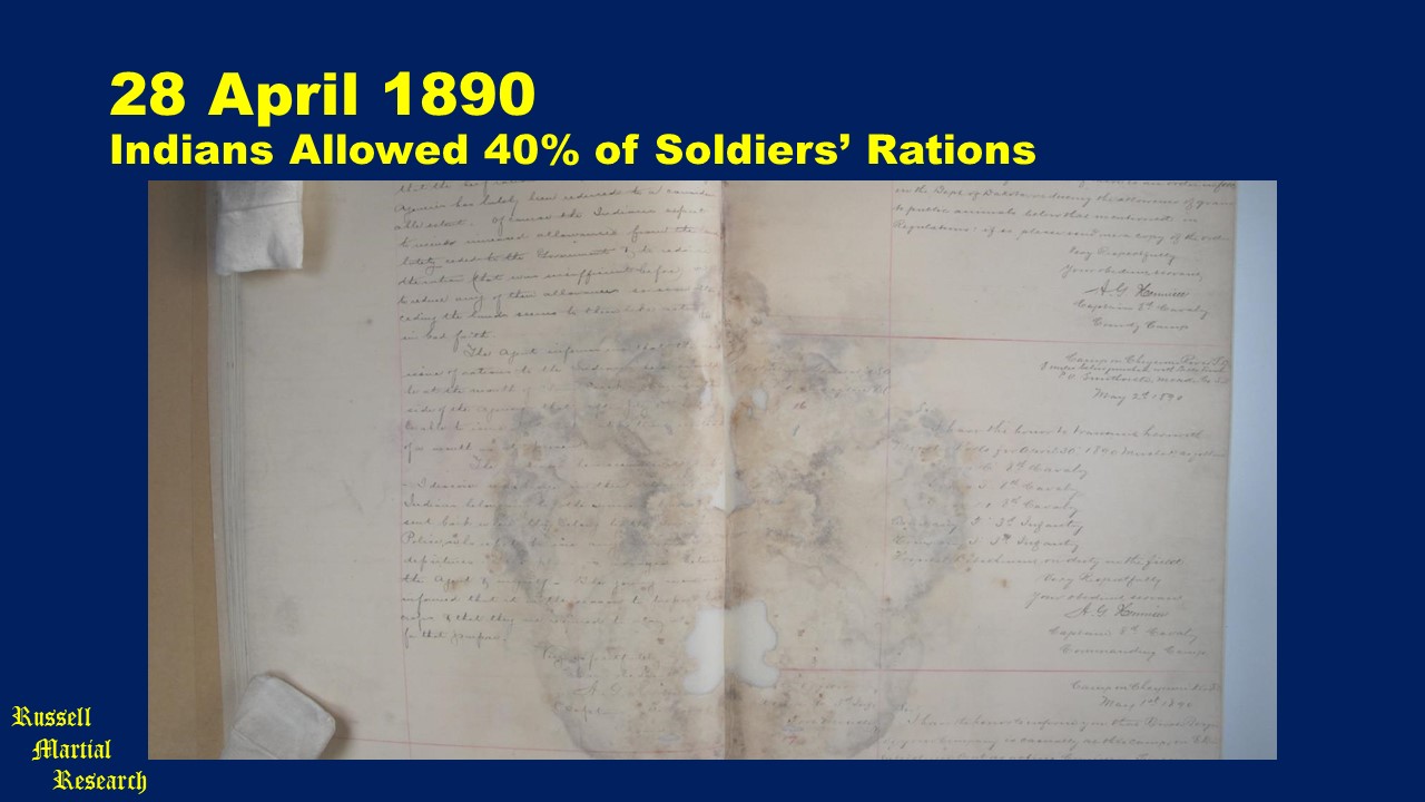 Capt. Hennisee reported on 26 November 1890 that the Indians at the ration issue on the reservation were armed with Winchester rifles with plenty of ammunition.