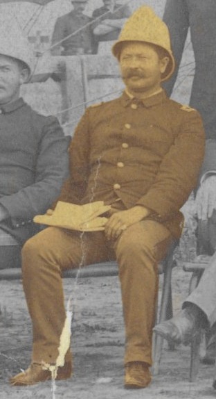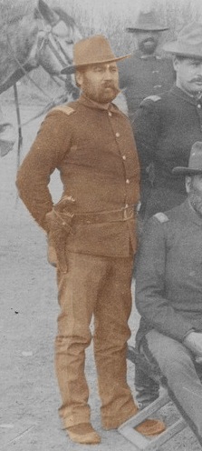 Colonel James William Forsyth was the fifty-six-year-old commander of the 7th Cavalry Regiment and served in that capacity at both engagements. He held a brevet of Brigadier General from his service in the Civil War, and as such was addressed as General Forsyth. Ironically, he was not commanding the regiment when Grabill took this photo, having been relieved by General Miles pending the outcome of an investigation into his conduct at Wounded Knee. Forsyth retired from the Army as a Major General in 1897 and died in 1906.
