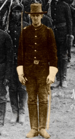 Thirty-six-year-old Lieutenant Horatio Gates Sickel, Jr., was assigned as the First Lieutenant of Captain Ilsley’s E Troop, 7th Cavalry, and commanded that unit at Wounded Knee. He was commended by the Commanding General of the Army in General Order No. 100 in 1891 for “gallant service” at Wounded Knee. Sickel retired from the Army at the rank of Colonel in 1918 and took his own life later that same year.