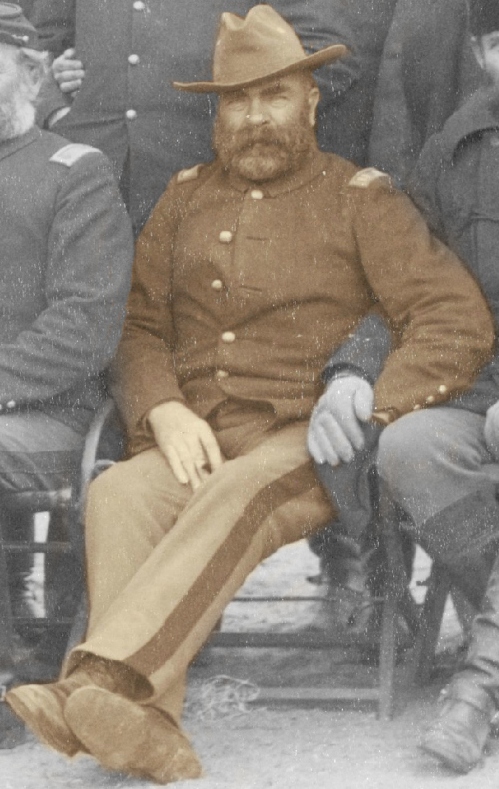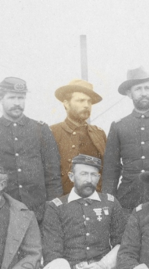 Mr. Dinwiddie… That is a great question and real possibility. Both Lt Wright, 9th Cav, and Lt Scott, 1st Cav were added into the photo. Unfortunately, I’ve not been able to find any primary source illuminating why they were added. I make the assumption that they were stand-ins for Capt. Wallace and Lt. Mann who were both deceased at the time of the photo. I can’t verify that assumption and cannot determine why those two particular officers were invited to sit in the photo. Wright and Wallace were close in age, as were Scott and Mann. While Wright, who was promoted to captain in the field during the campaign a few weeks after the battle, was most likely at White Clay Creek with the 9th Cav., Scott was not at either battle, serving in the “Leavenworth Battalion” under Lt. Col. Sanford. Both Wallace and Mann were West Point graduates. Scott was a West Pointer, but Wright was not. Perhaps the two officer were asked to sit-in because of their closeness in age to the two KIA and DOW officers, or perhaps they were the only officers available. Relations between the officers of the 7th Cav and 9th Cav were described as warm and amiable at the time of the photo. That would change in the months and years to come. Maj. Guy V. Henry was concerned with the press coverage of White Clay Creek spoiling the relationship between the two regiments. I covered this in my thesis at the Staff College: